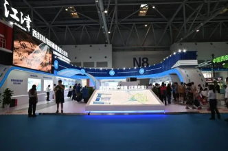 The Jiangjin exhibition zone is located in Booth A05 at Hall N8 Modern Manufacturing Zone, with a total area of 437 square meters. It is divided into seven major areas: New International Land-Sea Trade Corridor Chongqing Main Hub, Chongqing Hub Port Industrial Park (Jiangjin area), Shuangfu Technology and Innovation City, Degan Consumer Goods Industrial City, Baisha Emerging Industrial City, and Cultural Tourism Exhibition Zone. The overall design principle is "simplicity, grandeur, environmental protection, and transparency", and modern digital display technologies such as sound, light, electricity, and screen are used for all-round three-dimensional display. The main entrance of the exhibition zone is designed with a locomotive as an extension, mainly showcasing the main achievements of Jiangjin in strengthening the New International Land-Sea Trade Corridor Chongqing Main Hub and constructing the Chongqing Hub Port Industrial Park.