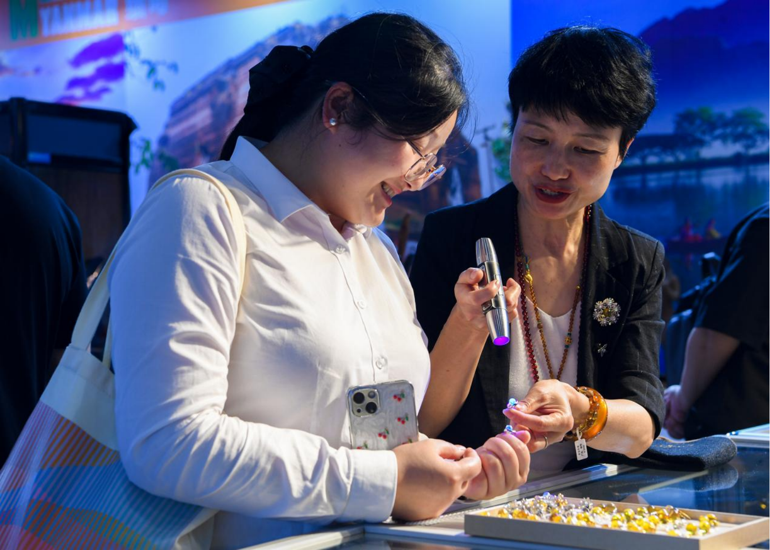 在国际合作展区,意大利的复古系家电及太阳镜、捷克的矿泉水与啤酒、乌拉圭的紫水晶、俄罗斯的咖啡和冰激凌、白俄罗斯的巧克力、尼日利亚的工艺木雕、缅甸的玉制品、法国的红酒等也受到许多市民喜爱,都是展场上的“爆款”。