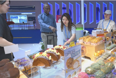 ▲ Nigerian business representatives explore new baking technologies at Namchow Food Group's booth at the Chongqing International Expo Center, May 23, 2025. Photograph courtesy of Reporter Zhang Jinhui