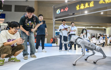 Robots on display at the Beibei Pavilion attract spectators at the 7th WCIFIT, Chongqing International Expo Center, May 22, 2025. Photograph courtesy of chief reporter Long Fan