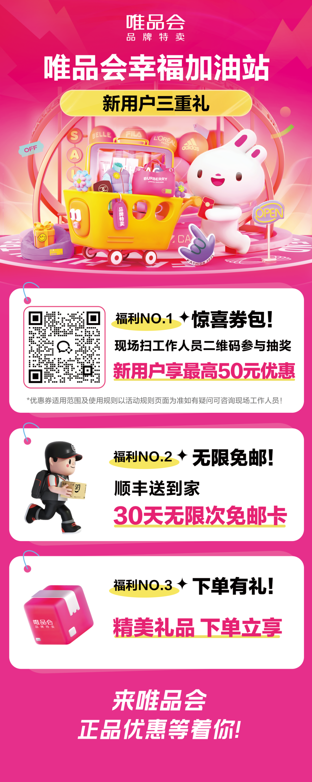 唯品会现场参展福利:唯品会面向西洽会参展商、采购商及观展消费者派发消费券:消费者可到唯品会展区参与活动,现场领取百元券包,展区现场也将派发小礼品。(具体福利以现场发布为准)