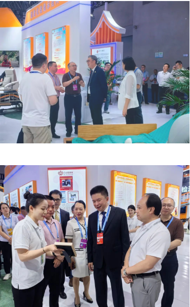 Xu Jian, Vice Mayor of the Chongqing Municipal Government, and Kan Jilin, Party Secretary of the Chongqing Municipal Civil Affairs Bureau, successively visited the Silver Economy Theme Exhibition hosted by the Chongqing Municipal Civil Affairs Bureau (CMCAB). They were briefed on elderly-friendly transformation, institutional elderly care, smart elderly care, and elderly care finance, among other areas; learned about the participating elderly care enterprises; encouraged these enterprises to expand their presence in Chongqing's elderly care industry; and urged efforts to advance the high-quality development of elderly care services in Chongqing.