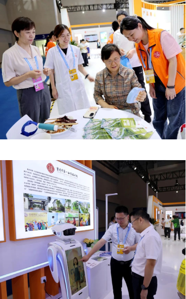 For this exhibition, the CMCAB brought together 26 enterprises and public institutions to develop a Silver Economy Theme Exhibition with the theme "Silver New Trend, Chongqing Joyful Aging". It features five key thematic sections: elderly-friendly renovation demo rooms, institutional elderly care, smart elderly care, elderly care finance, and senior products and supplies. Among these, the elderly-friendly renovation demo room focuses on clarifying to the public Chongqing's "Huanxin" subsidy policy for elderly-friendly renovations and the product catalog covered by the city's "Huanxin" subsidy for home-based elderly-friendly renovations; The smart elderly care section features the "Chongqing Joyful Aging" platform, emotional companion robots, smart canes, and intelligent wheelchairs; The elderly care finance section features professional, inclusive, and accessible elderly care financial services; The senior products and supplies section features nursing beds, electric wheelchairs, millimeter-wave fall detectors, heart rate monitors, and massage devices.