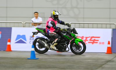 ▲ Races against the clock during the Gymkhana Motorcycle Cone Challenge at Chongqing International Expo Center, May 19. Photograph courtesy of reporter Qi Lansen/ Visual Chongqing