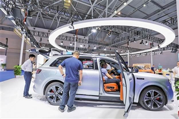 Inside the hall, the spotlight fell on three brand-new vehicles, the AITO M8, Deepal S09 and NEVO E07, immediately grabbing every visitor's attention. The high-tech exterior design prompted a steady stream of questions from visitors. The vehicles' overall high-tech content fully displayed the distinctive character and advanced standard of Jiangbei manufacturing.